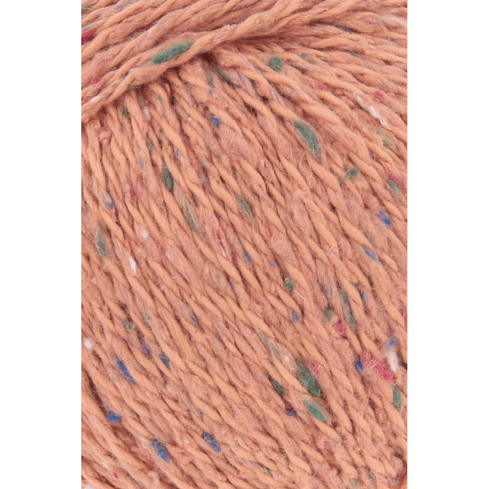 Bavlna s tweedovým efektem v klasickém vícenitkovém skaní. Příze je méně pružná než vlna, což zajišťuje dobrou tvarovou stálost letních modelů. Barevné nopky vytvářejí jemně strukturovaný povrch.