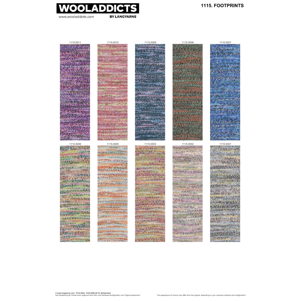 Footprints: Výkonná ponožková směs kombinující bavlnu, vlnu s úpravou superwash a polyamid. Má nadstandardní návin 400 metrů, což umožňuje pletení vysokých ponožek z jednoho klubka. Bavlna zajišťuje prodyšnost a efektivní odvod vlhkosti.