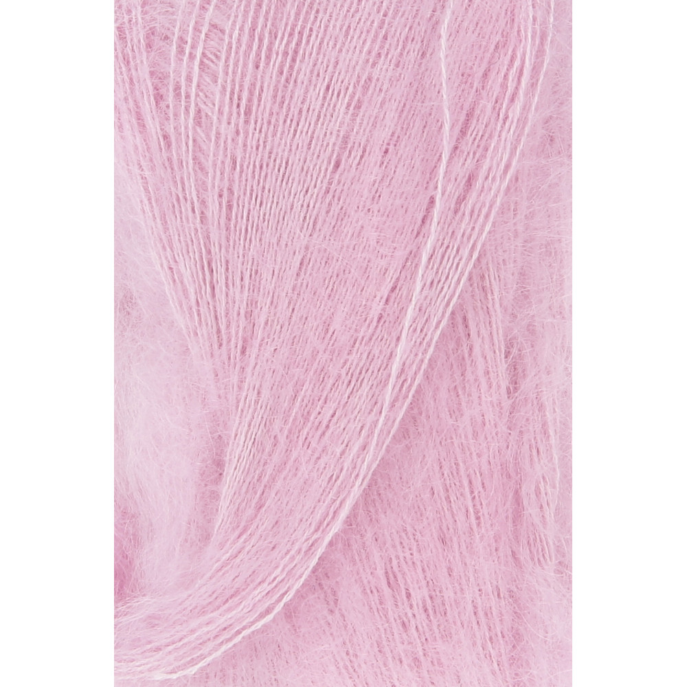 Více se dočtete v popisuLace: Extra jemná směs superkid mohéru a hedvábí. Příze má dlouhý, hedvábný vlas, který v úpletu vytváří jemný zákal (halo efekt). Hedvábné jádro zaručuje pevnost, zatímco mohér dodává objem při zachování minimální hmotnosti.