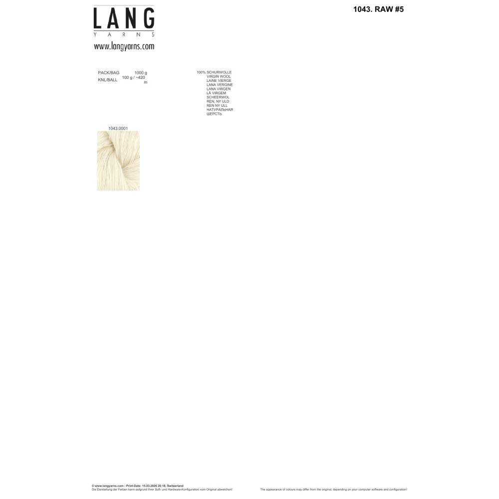 Více se dočtete v popisuRAW #5 | 1043.0001 – Prvotřídní příze pro ruční barvení VYSOKOKVALITNÍ PŘÍZE PRO PROFESIONÁLNÍ BARVÍŘE. Značka LANGYARNS disponuje desítkami let zkušeností v selekci surovin a technologiích předení. S kolekcí RAW by LANGYARNS dáváme poprvé k dispozici naši kompletní kompetenci a servis profesionálním barvířům v podobě výběru těch nejkvalitnějších základových přízí. RAW #5 je exkluzivní základ pro vaši tvorbu ve 100g přadenech. Příze je vyrobena zcela bez uzlů (technologií splicing), což zaručuje dokonalý výsledek bez kazů. TECHNICKÉ PARAMETRY: • Složení: 100% střižní vlna (Merino fine, 21.5 mikronu) – mulesing-free. • Úprava: Superwash. • Návin: cca 420 m / 100 g. • Formát: 100g přadena určená k barvení. • Kvalita: Bezuzlová produkce (spojováno splétáním). PRODEJNÍ INFORMACE: • Cílová skupina: Nabídka určena pro komerční barvíře v EU a Švýcarsku. • Prodejní jednotka: Prodáváme pouze celá balení. • Balení obsahuje: 10 přaden x 100 g = 1 kg (Art. 1043.0001).