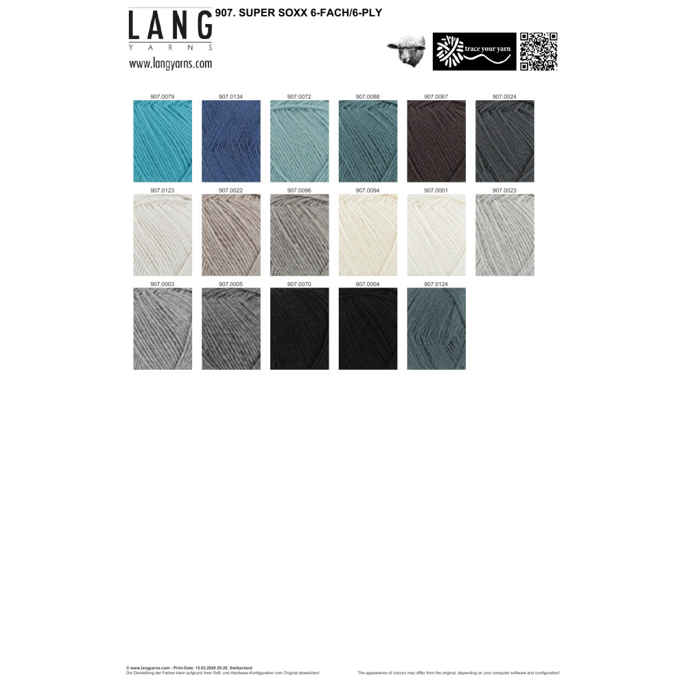 Super Soxx 6-fach: Silnější, šestinitková varianta ponožkové příze. Nabízí vyšší tepelný komfort a je vhodná pro pletení robustnějších ponožek nebo zimních doplňků. Vícenitkové skání zaručuje rovnoměrný povrch úpletu a jasnou kresbu vzoru.