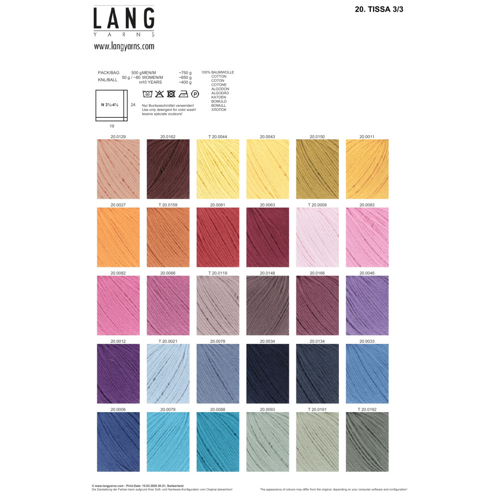 Tissa 3/3: Vysoce kvalitní 100% bavlna z dlouhostébelných vláken v česané úpravě. Vícenitkové skání dodává přízi mimořádnou pevnost a odolnost proti opotřebení. Je ideální pro háčkování bytových doplňků, chňapek a odolného textilního zboží.